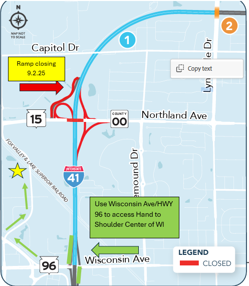 WIS 15/HWY 00 Southbound ramp CLOSING Tuesday 9.2.25
